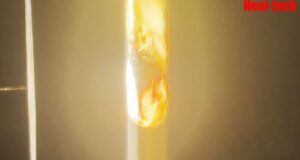 試験管内に配置した竹材に赤外線を局所的に照射し、加熱時の挙動を観察しました。 ...