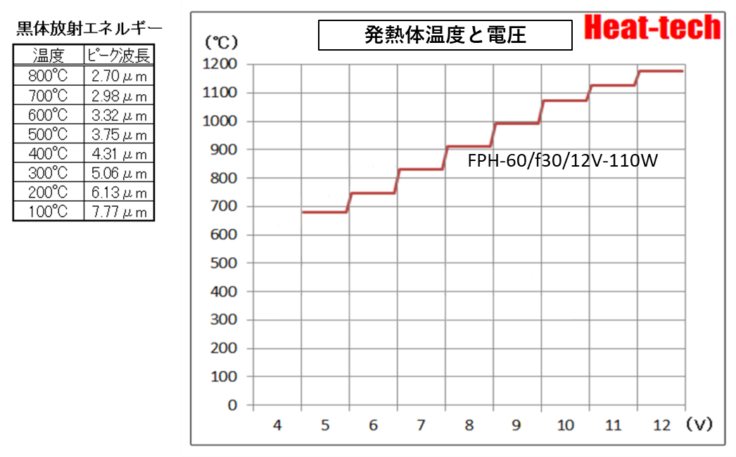 発熱体の温度を調節することで、遠赤外線のピーク周波数を管理することが出来ます。